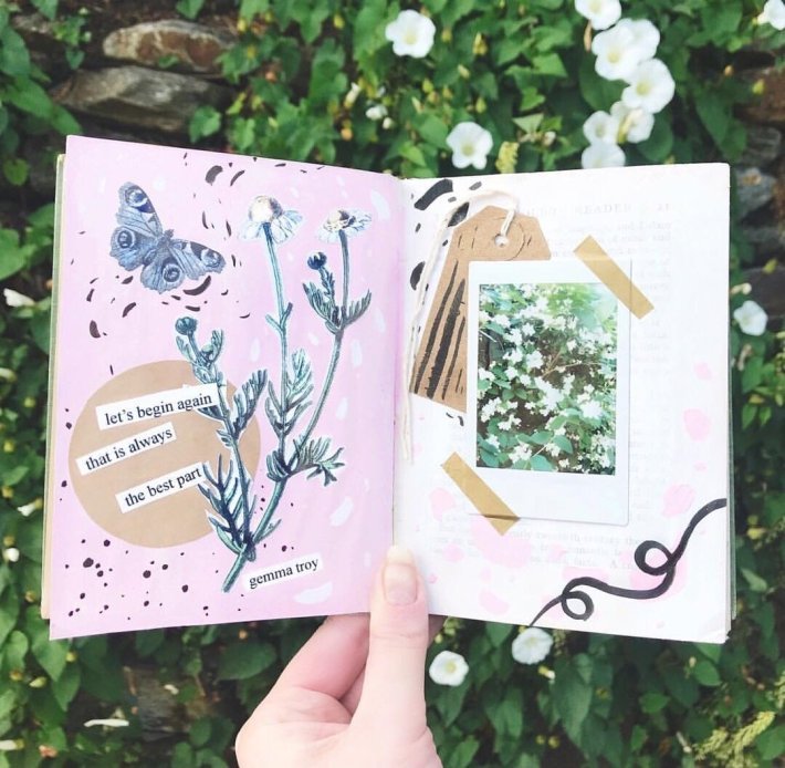 Utilizing fowers and pulling imagery from nature, this account blends images with cursive writing and collage.