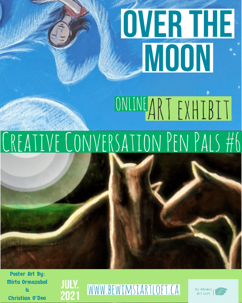 I upload all of the “conversations” to an online exhibition on http://www.BeWhimsiArtLoft.ca and share the link with all of you so you can share with friends and family.