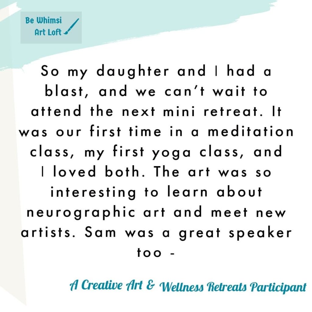 To give back to the community and remove barriers to arts or wellness activities by offering quality retreat days for free and lowcost.